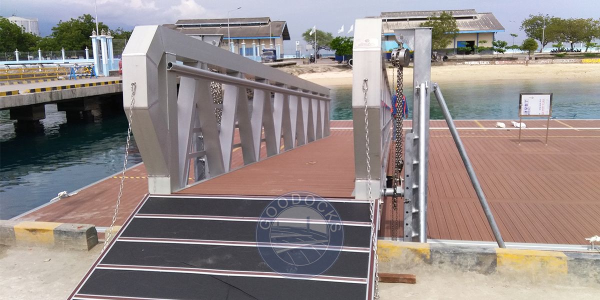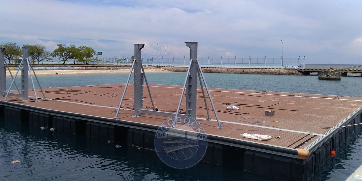 We built 33 aluminum alloy yacht berths for Celukan Bawang Cruise Port. The overall pontoon system only took 1 month to complete, including design, manufacturing, transportation and installation. The cargo supply covers the corresponding aluminum alloy frame, approach bridge, concrete anchor block and accessories of anchoring system etc. When you stand and stare at Barwang Harbor, Would you feel the great passion from Goodocks?